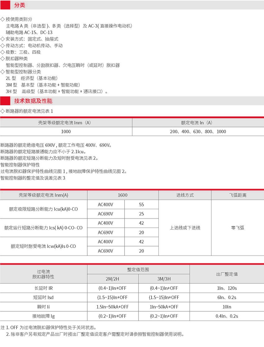 RMW1-2000/1000 万能式断路器